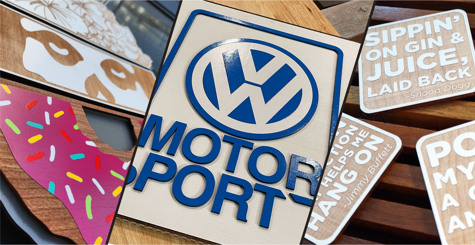 We specialize in custom trophies, large signs and smaller unique engraved pieces. We can use your logo or create a design to fit your needs that brings a specialized experience to your audience.